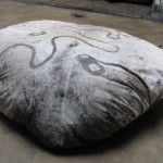- Planeta 7, 2005. Piel de vaca intervenida y corcho. d.120cm diametro x50cm altura