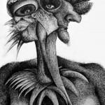 Los bestiarios, o la teratología como tema, han sido recurrentes en la historia del arte. La figura del monstruo es una de las tantas manifestaciones de la inestabilidad, (Omar Calabrese L’età neobarocca, 1987, Roma). Partiendo de algunas de las estampas de Francisco de Goya, he conformado esta colección que, sin embargo, he venido ampliando con otros referentes, tomados de la observación y reciclaje de formas animales y humanas, con la finalidad de crear existencias híbridas, inestables y ambiguas, expresivas y patéticas. De las estampas “goyescas” rescato la idea de libertad “caprichosa” que las conforma, las cualidades expresivas de los personajes, sus representaciones deformadas o teratológicas, junto a una exquisita intencionalidad satírica. Mi formación como dibujante y grabador también ha sido un factor importante al momento de la elección de este primer referente.