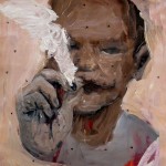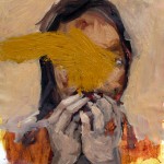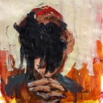 - Plegarias bajo el discurso, 2014. Acrílico, óleo sobre tela. 50×48 Cm.
