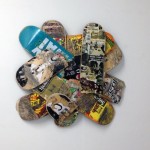 - “Untitled,” 2012. Broken skateboards (assemblies) 40 x 40 inches