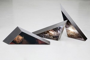 Volcanic Triad, 2013. Duratrans, plexiglass, stainless steel, LED, & electronic components. Dimensions: variable